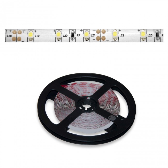 Tira LED 12V DC 60LED/m 6500k Blanca IP44. Esta tira LED monocolor tiene 5 metros de longitud y utiliza LED de tecnología SMD3528 de gran luminosidad que emite aproximadamente 240 lúmenes por metro en un ángulo de 120º.