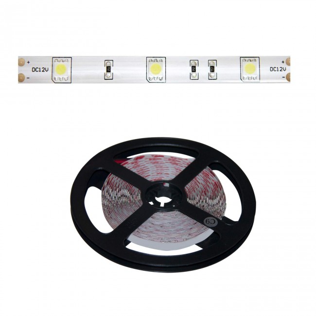 Tira LED 12V DC 2700k Blanca cálida 30LED/m IP44. Esta tira LED monocolor tiene 5 metros de longitud y utiliza LED de tecnología SMD5050 de gran luminosidad que emite aproximadamente 300 lúmenes por metro en un ángulo de 120º.