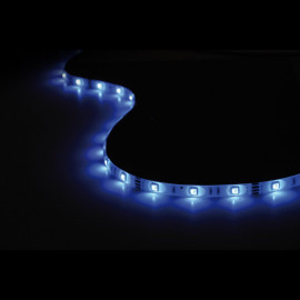 Kit de tira LED 12V DC 30 LED por metro, en color azul. Esta tira LED monocolor tiene 5 metros de longitud y utiliza LED de tecnología SMD5050 de gran luminosidad que emite aproximadamente 1350 lúmenes en un ángulo de apertura de 120º.